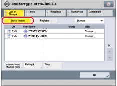 <NG> indica i lavori di stampa annullati nella schermata del registro dei lavori di stampa.