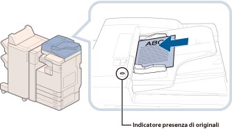 . La macchina trasporta automaticamente gli originali uno alla volta e li posiziona sul vetro di lettura, da cui vengono acquisiti. Gli originali in fronte-retro possono essere voltati automaticamente e letti come documenti in fronte-retro.