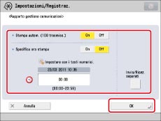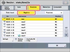 Se [Visualizzazione registro] in [Impostazioni gestione] (Impostazioni/Registrazione) è impostato su 'Off', [Rapporto gestione comunicazioni] non viene visualizzato.