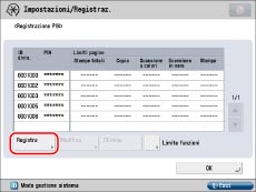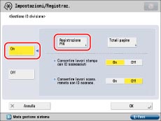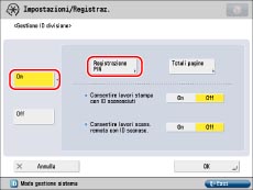Se Gestione ID divisione è stata attivata tramite il Copy Card Reader-F1, non sarà possibile registrare/eliminare gli ID divisione.