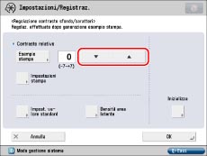 Quando si modifica l'area di regolazione sulla stampa di esempio per il contrasto relativo, specificare le impostazioni per [Impost. valore standard].