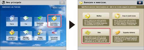 Per utilizzare la posizione di memorizzazione di rete, è necessario impostarla in anticipo in base alle necessità. Per ulteriori informazioni, vedere "Impostazioni dell'Area di condivisione/Rete".