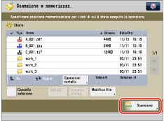 È possibile acquisire e memorizzare fino a 999 pagine contemporaneamente. Se gli originali fronte-retro vengono acquisiti con l'alimentatore, è possibile memorizzare fino a 1.000 pagine. Quando viene raggiunto il numero massimo di originali acquisibili, viene visualizzato un messaggio che chiede se memorizzarli.