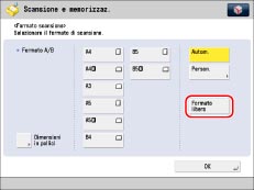 È possibile specificare manualmente un formato di scansione quando si acquisiscono originali che non possono essere rilevati con [Autom.]. Inoltre, è possibile registrare il formato di scansione specificato.