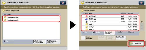 Questo modo è disponibile solo per registrare i file archiviati nell'Area di condivisione, nell'Area di condivisione di un'altra macchina imageRUNNER ADVANCE della rete o nel supporto di memoria.