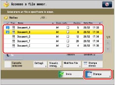È possibile selezionare più file solo se sono memorizzati nella stessa mailbox. Per stampare più file memorizzati in mailbox diverse, è dapprima necessario spostare i file in una sola mailbox. (Vedere "Spostamento/duplicazione di un file".)