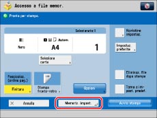 È possibile memorizzare i seguenti modi e impostazioni di stampa: il numero di stampe, selezione carta, stampa fronte-retro, finitura, copertina, inserimento fogli, opuscolo e margine di rilegatura.