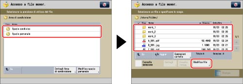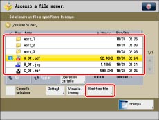 Selezionare la posizione di memorizzazione desiderata → selezionare il livello della cartella desiderata → premere [Modifica file].
