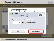 Se al termine della scansione dell'ultimo gruppo di originali viene visualizzata la seguente schermata, selezionare [Avvio memorizz.].