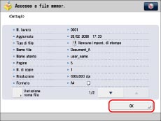 Selezionare la mailbox desiderata → specificare il file desiderato → premere [Dettagli].