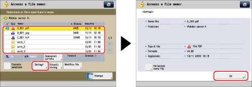 Selezionare il file desiderato → premere [Dettagli] → [OK].