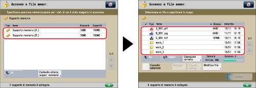 Premere [Accesso a file memor.] → [Supporto memoria].