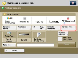 Se [Da formato PDF a formato PDF/A] in Impostazioni/Registrazione è impostato su 'On', non è possibile selezionare il formato Estens. funzionalità Reader.