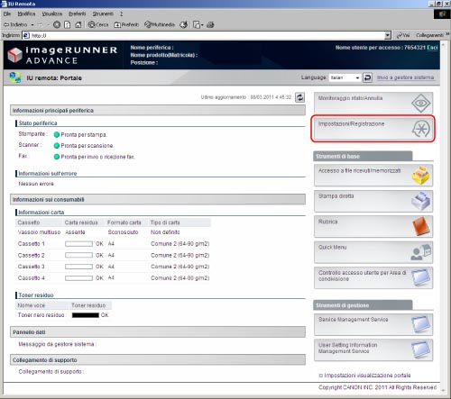 → [Invio] → [Registro] → verificare che il lavoro sia stato inviato correttamente.