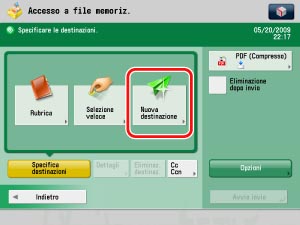 Selezionare [Scansione e invio] nella schermata del menu principale → [Nuova destinazione].