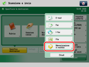 Selezionare [Memorizzazione in mailbox] → selezionare il numero di mailbox in cui si vuole eseguire la registrazione → premere [OK].