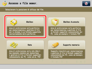 Accedere alla IU remota → fare clic su [Accesso a file ricevuti/memorizzati] → [Mailbox] → fare clic sul numero di Mailbox per il quale impostare l'Invio URL.
