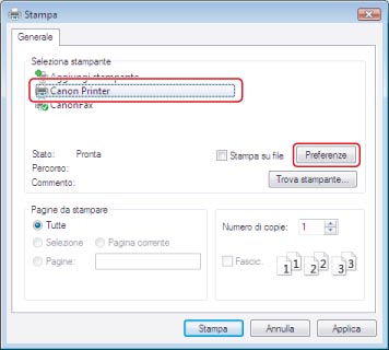 Dal menu [Archivio] del software applicativo utilizzato per la stampa del documento → selezionare [Stampa].