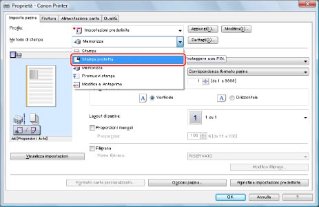 Selezionare [Stampa protetta] da [Metodo di stampa].