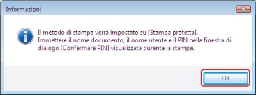 Per passare al modo Stampa protetta, fare clic su [OK] nella finestra di messaggio.