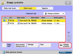 Selezionare il lavoro protetto da stampare → selezionare [Stampa protetta].