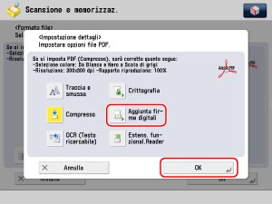 Selezionare [PDF] → [Impostazione dettagli].