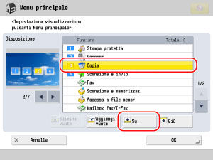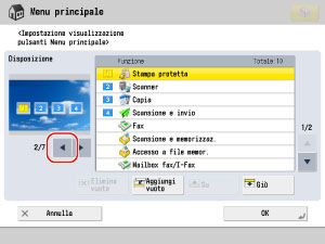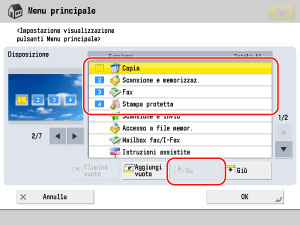 Ripetere l'operazione del punto 4 per spostare [Scansione e memorizzazione] alla posizione <2>, [Fax] alla posizione <3> e [Stampa protetta] alla posizione <4>.