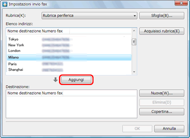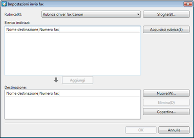 È possibile configurare la copertina nella finestra di dialogo [Impostazioni invio fax]. Per ulteriori informazioni, vedere la sezione "Riferimento".