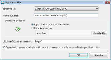 È possibile inviare per fax più documenti come unico documento raccoglitore. In questo caso, appare la finestra di dialogo [Impostazione ordine documenti multipli]. Per ulteriori informazioni, vedere la sezione "Riferimento".