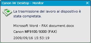Questa icona viene visualizzata nell'intervallo di tempo tra l'inizio dello spooling eseguito dallo spooler di Windows e il completamento del lavoro di invio fax a imageRUNNER ADVANCE.