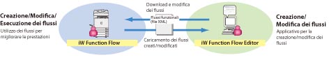 iW Function Flow è un'applicazione MEAP che consente di creare ed eseguire flussi sulla macchina.