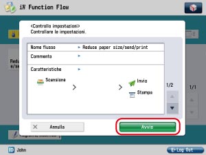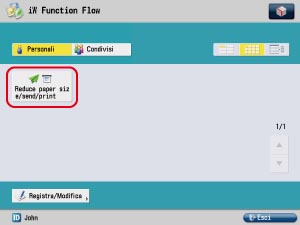 Premere [Reduce paper size/send/print] sulla finestra delle funzioni principali di iW Function Flow.
