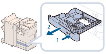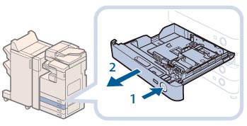 1. Tirare ed estrarre il cassetto dalla macchina tenendone i lati destro e sinistro con le mani. |