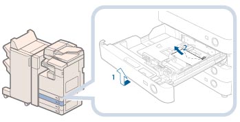2. Premere il comparto delle buste e spostare la guida anteriore della larghezza anteriore per allinearla al contrassegno del formato busta desiderato. |