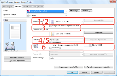 Per informazioni su come visualizzare la schermata del driver della stampante, vedere "Stampa" o "Configurazione delle impostazioni di stampa predefinite".