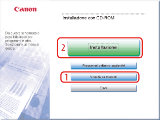Innanzitutto fare clic su questo pulsante per visualizzare la Guida di Installazione del Driver Stampante. Non è possibile visualizzare la guida una volta che l'installazione è stata avviata.