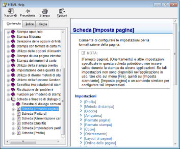 Per ricercare informazioni fare clic su [Contenuto] / [Indice] / [Cerca].