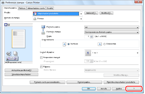 È possibile visualizzare la guida in linea facendo clic su [?] nella schermata del driver della stampante.