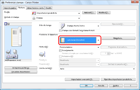 L'impostazione predefinita per [Stile di stampa] è [Stampa fronte/retro]. Tuttavia, in alcune versioni di driver l'impostazione predefinita è [Stampa su un lato].
