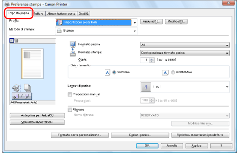 Per informazioni su come visualizzare la schermata del driver della stampante vedere "Stampa" o "Configurazione delle impostazioni di stampa predefinite".