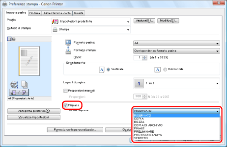 Selezionare [Filigrana] → selezionare la filigrana per la stampa.