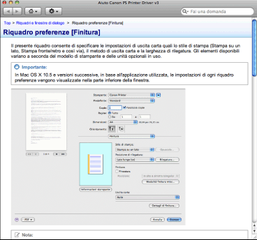 La guida in linea fornisce ulteriori informazioni su ognuna delle opzioni di stampa. Se non si dovessero trovare le informazioni desiderate in questo manuale, si consiglia di consultare la guida in linea.