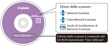 Il driver dello scanner viene installato dallo stesso User Software CD-ROM del driver della stampante.