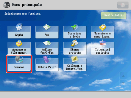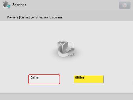 Per eseguire scansioni e permettere al computer di ricevere dati dallo scanner, è innanzitutto necessario impostare la funzione scanner su "online".