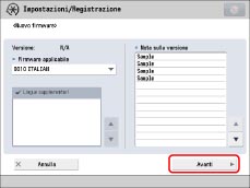 Firmware applicabile: indica il nuovo firmware applicabile alla macchina.