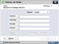 Zum Senden an einen WebDAV-Server ist eine Server-Authentisierung erforderlich. Aktivieren Sie die Authentisierung, bevor Sie einen WebDAV-Server verwenden.