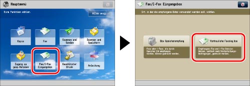 Berühren Sie nacheinander die Tasten [Fax/I-Fax Eingangsbox] → [Vertrauliche Faxeing.box].