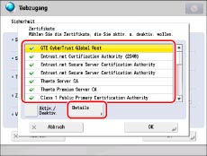 Wählen Sie ein Zertifikat aus → Berühren Sie [Aktiv./Deaktiv.].