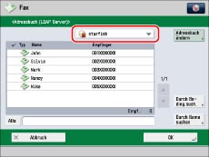 Wenn mehrere LDAP Server registriert sind und die Funktion [Auto Suche bei Verwendung des LDAP Server] aktiviert ist, wird der erste registrierte Server auf der Auswahlliste gesucht.