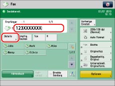 Wählen Sie den Empfänger aus der Gruppe → Berühren Sie die Taste [Details].